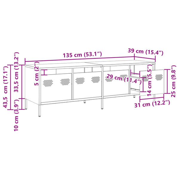 Oliivinvihreä tv-taso 135x39x43,5cm kylmävalssattu teräs