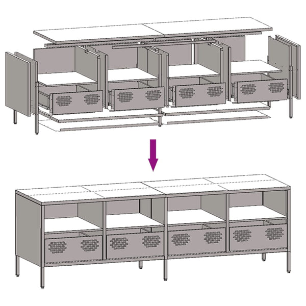 Tämä teollista tyyliä oleva tukeva TV-taso on ajaton lisä olo- tai makuuhuoneeseen.