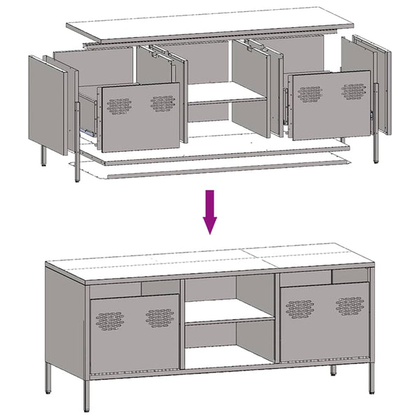 Tämä teollista tyyliä oleva tukeva TV-taso on ajaton lisä olo- tai makuuhuoneeseen.