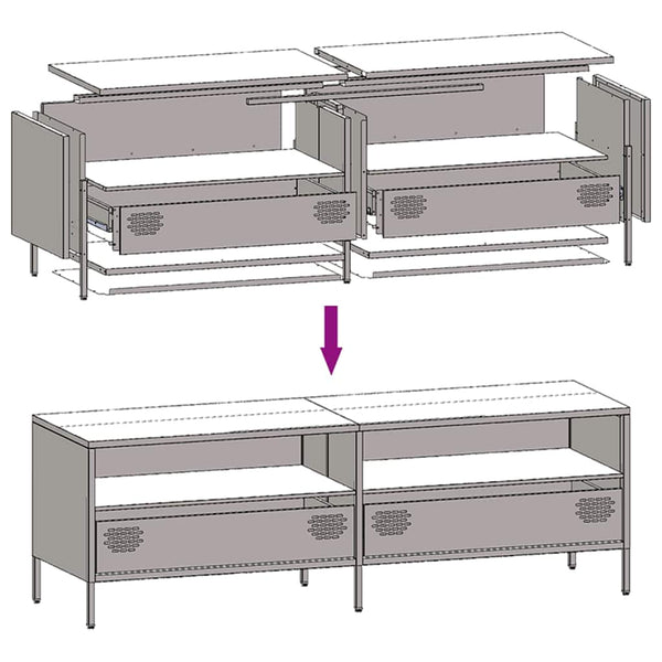 Tämä teollista tyyliä oleva tukeva TV-taso on ajaton lisä olo- tai makuuhuoneeseen.