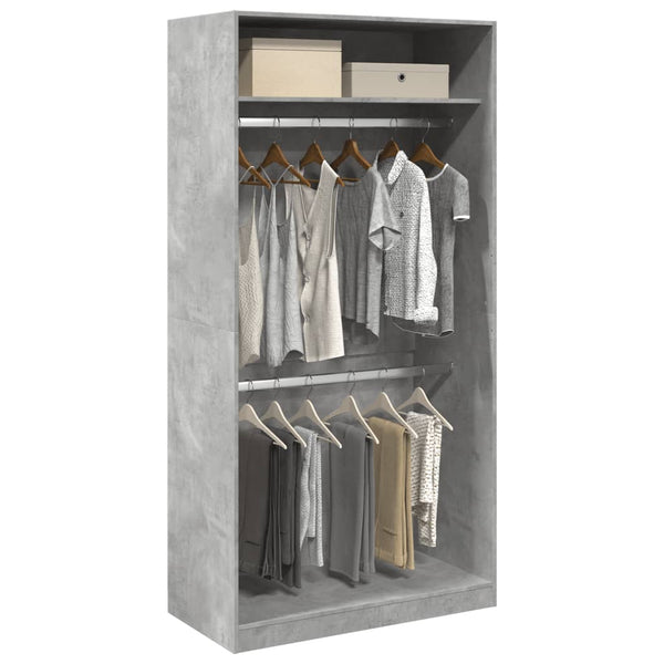Betoninharmaa vaatekaappi 100x50x200cm lastulevy