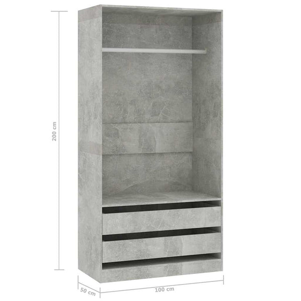 Betoninharmaa vaatekaappi Onal 100x50x200cm (puinen)