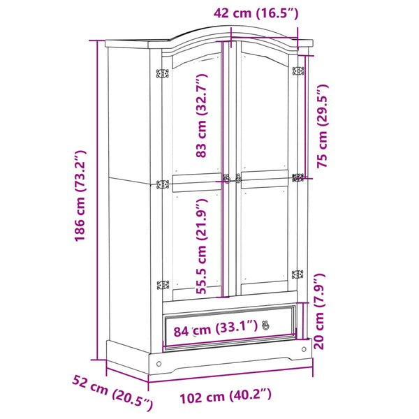 Vaatekaappi Corona 102x52x186 cm täysi mänty