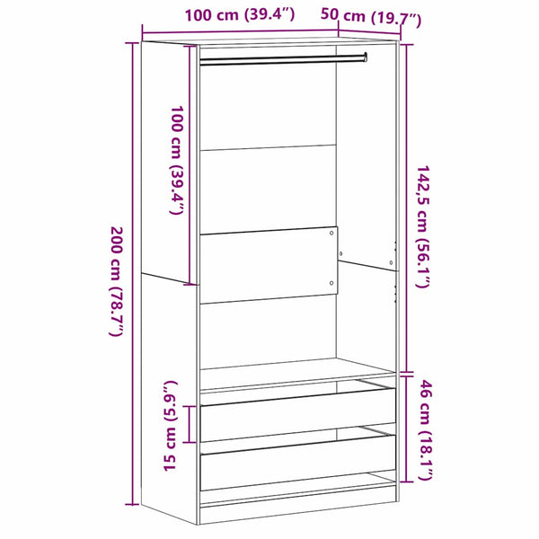 Musta tammi vaatekaappi hyllyllä 100x50x200cm puinen