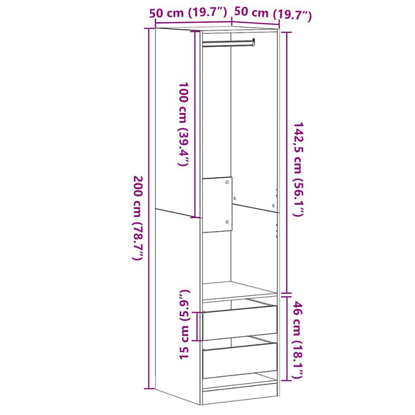 Musta tammi vaatekaappi hyllyllä 50x50x200cm puinen
