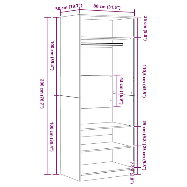 Mustatamme vaatekaappi hyllyllä 80x50x200cm puinen