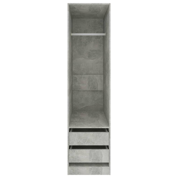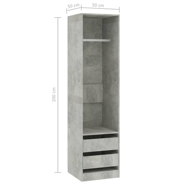 Betoninharmaa vaatekaappi laatikoilla 50x50x200cm puinen