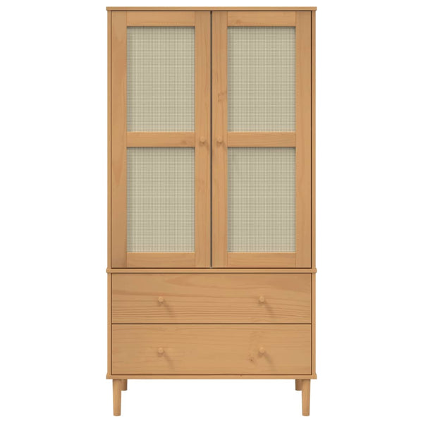 Ruskea vaatekaappi senja 90x55x175cm rottinkityyli, mänty