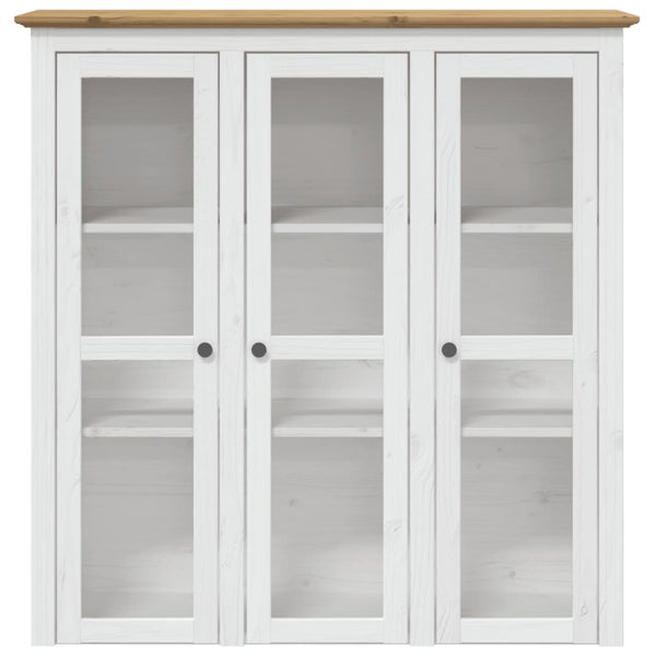 Valkoinen ja ruskea vitriinikaappi bodo mänty
