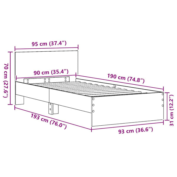 Musta tammi sängyn runko päätyllä 3FT Single puinen