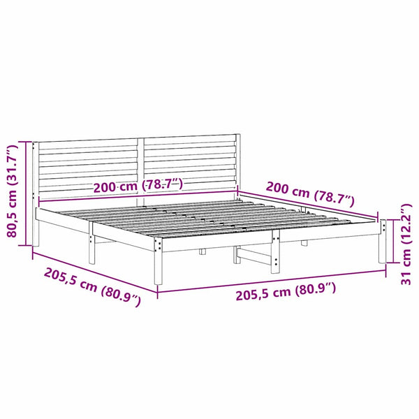 Ruskea sängyn runko päätyllä 200x200cm mänty