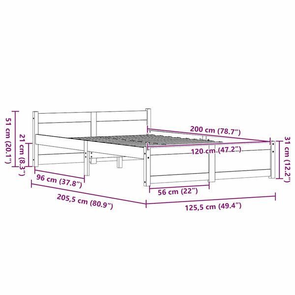 Vahanruskea sängyn runko päätyllä 120x200cm mänty