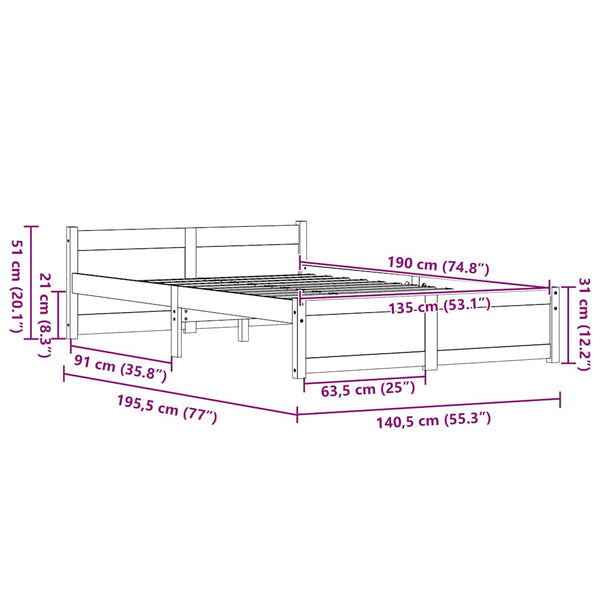 Vahanruskea sängyn runko päätyllä 4FT6 Double mänty