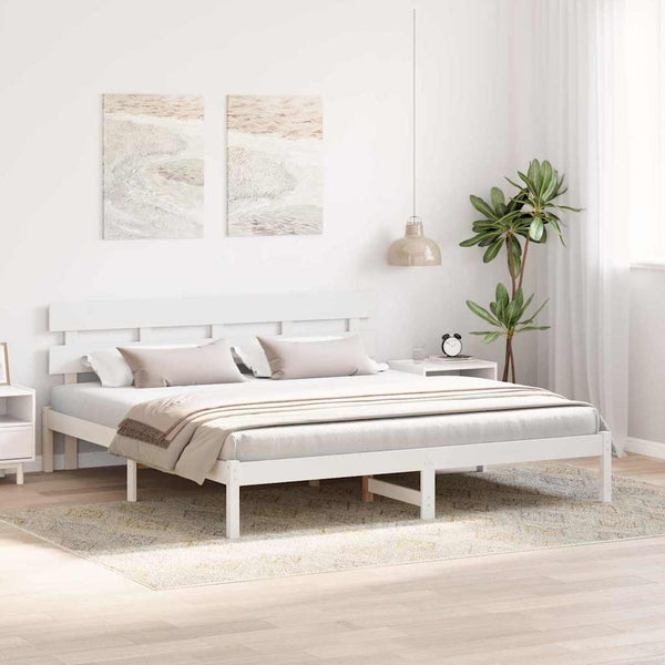Valkoinen sängyn runko päätyllä 200x200cm mänty