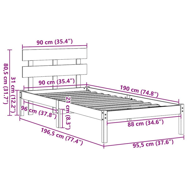 Valkoinen sängyn runko päätyllä 3FT Single mänty