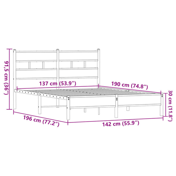 Ruskea tammi sängynrunko ilman patjaa 137x190cm puinen
