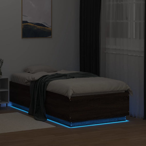 Sängynrunko LED-valoilla ruskea tammi 90x190 cm tekninen puu