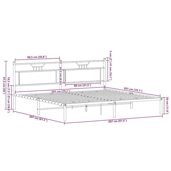 Sängynrunko ilman patjaa ruskea tammi 200x200 cm tekninen puu