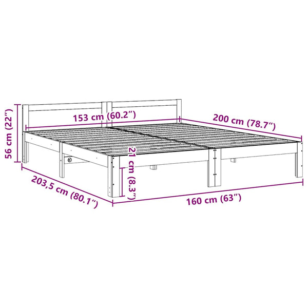 Valkoinen sängynrunko ilman patjaa 160x200cm mänty