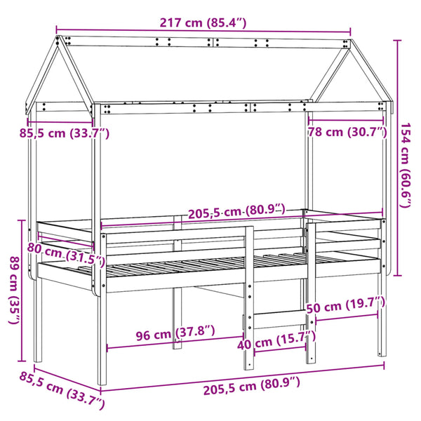 Korotettu sänky katoksella 80x200cm mänty