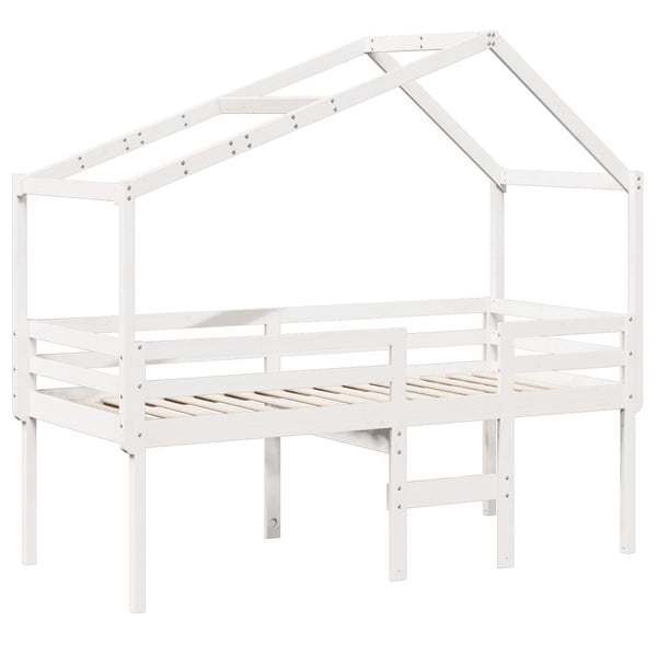 Valkoinen korotettu sänky katoksella 90x190cm mänty