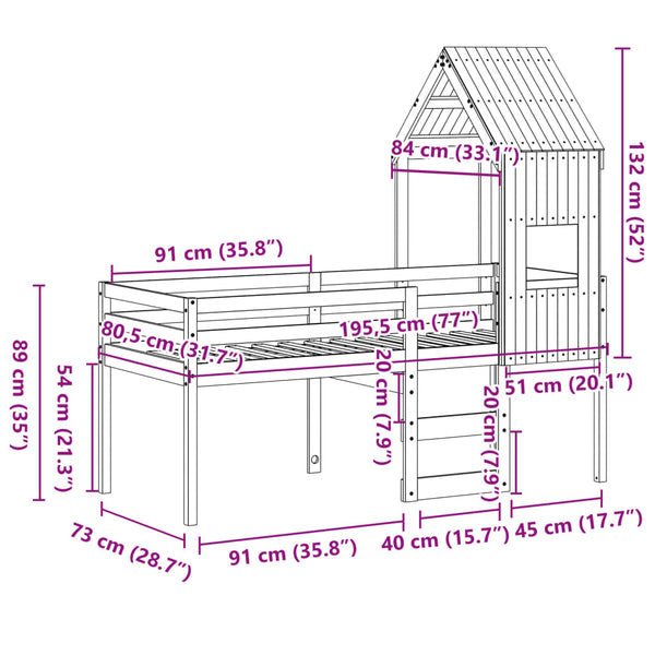 Vahanruskea korotettu sänky katolla 75x190cm mänty
