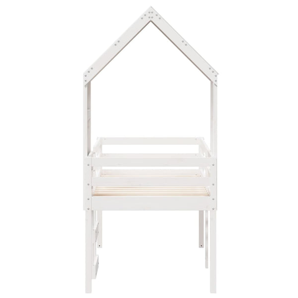 Valkoinen korotettu sänky katolla 75x190cm mänty