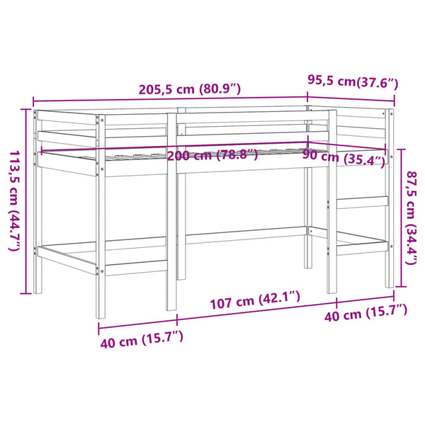 Vahanruskea lasten parvisänky tikkailla 90x200cm mänty
