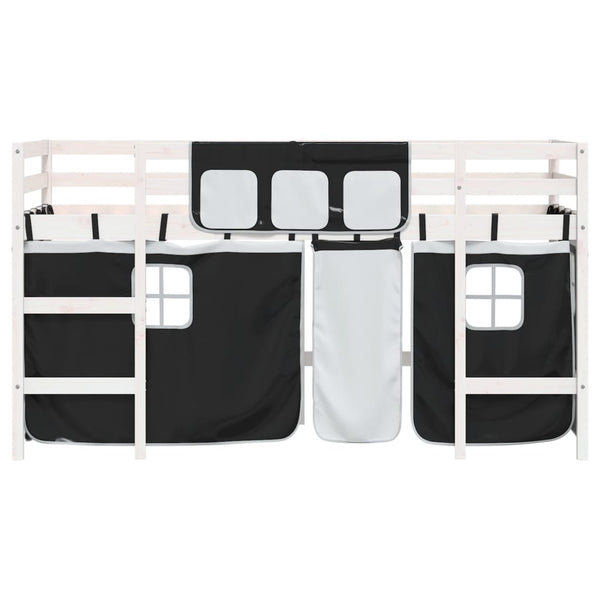 Mustavalk. lasten parvisänky verhoilla 90x190cm mänty