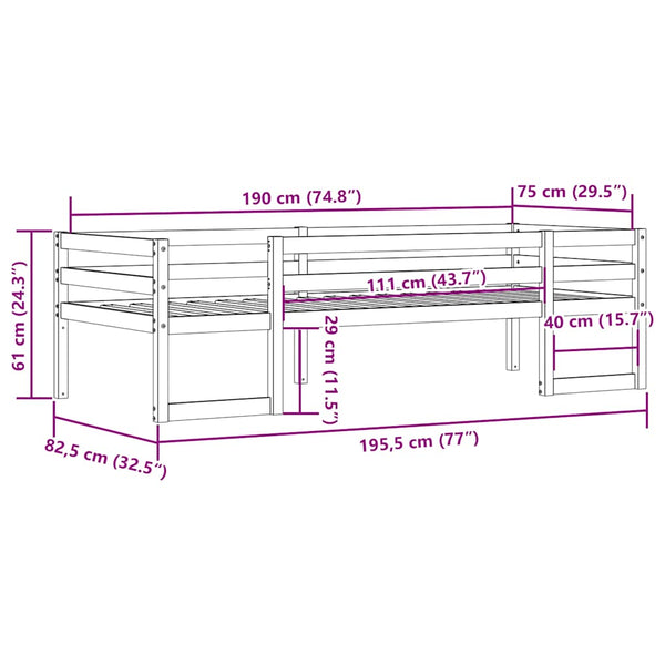 Vahanruskea lasten sängynrunko 75x190cm mänty