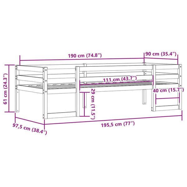 Vahanruskea lasten sängynrunko 90x190cm mänty
