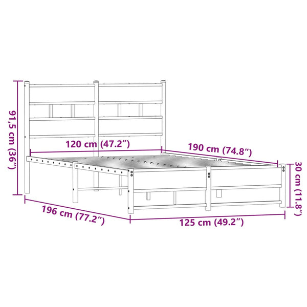 Ruskea tammi metallinen sängynrunko ilman patjaa 120x190cm