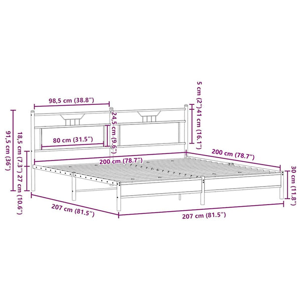 Ruskea tammi metallinen sängynrunko ilman patjaa 200x200cm