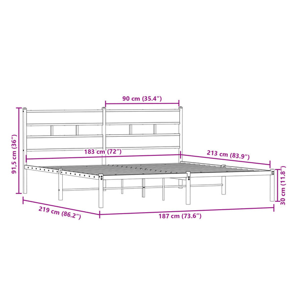 Savutammi metallinen sängynrunko ilman patjaa 183x213cm