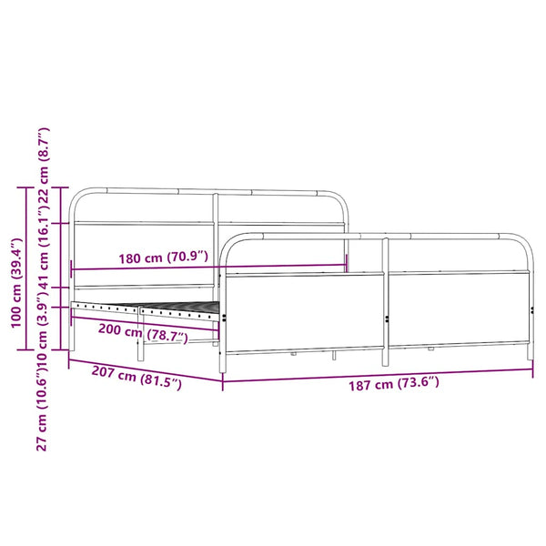 Sonoma-tammi metallinen sängynrunko ilman patjaa 180x200cm