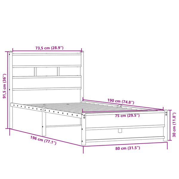 Sonoma-tammi metallinen sängynrunko ilman patjaa 75x190cm
