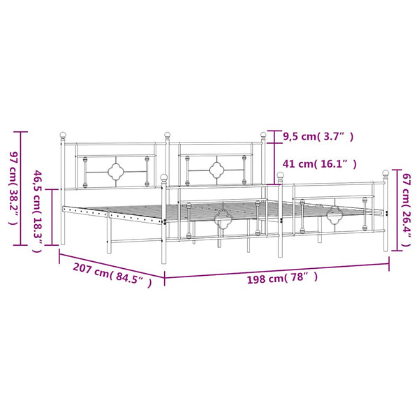 Musta metallinen sängynrunko päädyillä 193x203cm