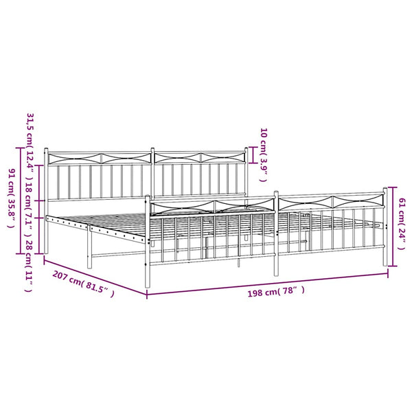 Musta metallinen sängynrunko päädyillä 193x203cm