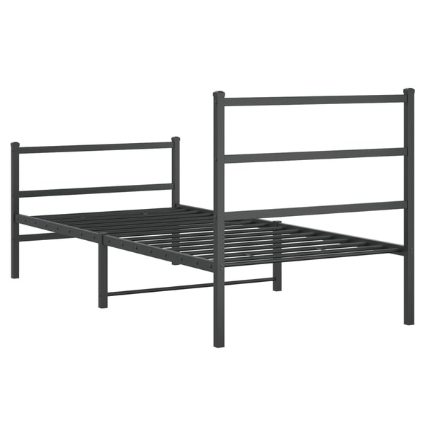 Musta metallinen sängynrunko päädyillä 90x190cm