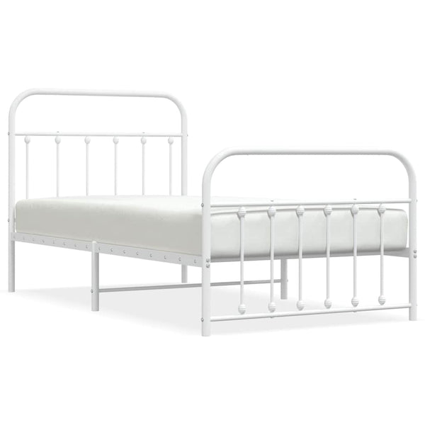Valkoinen metallinen sängynrunko päädyillä 100x190cm