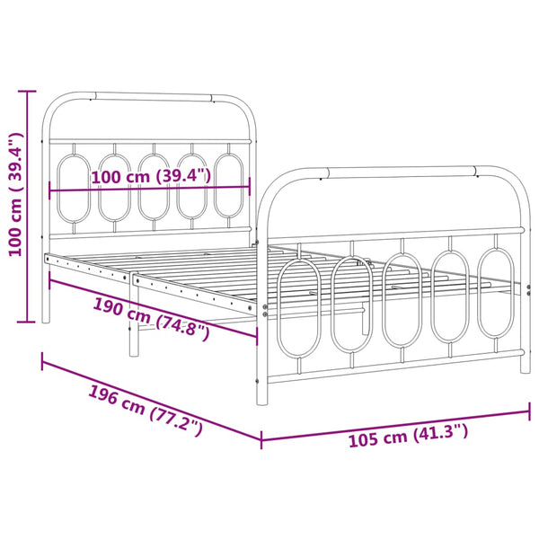 Valkoinen metallinen sängynrunko päädyillä 100x190cm