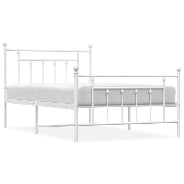 Valkoinen metallinen sängynrunko päädyillä 107x203cm