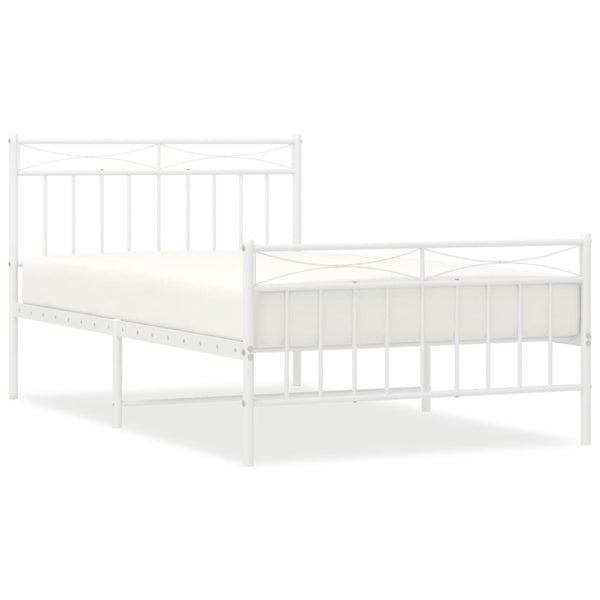 Valkoinen metallinen sängynrunko päädyillä 107x203cm