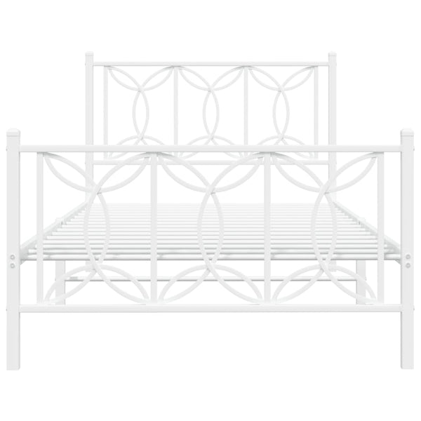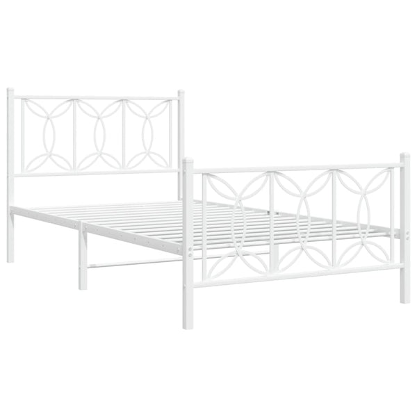 Valkoinen metallinen sängynrunko päädyillä 107x203cm