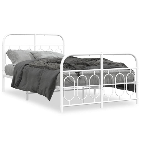 Valkoinen metallinen sängynrunko päädyillä 120x190cm