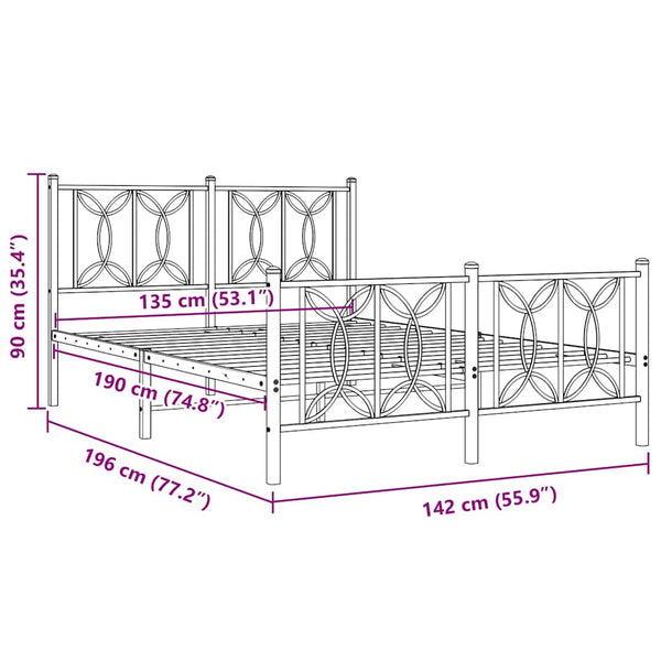 Valkoinen metallinen sängynrunko päädyillä 135x190cm