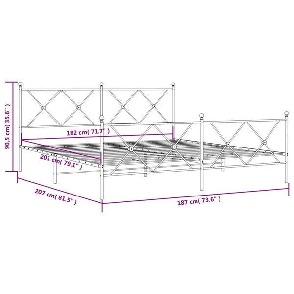 Valkoinen metallinen sängynrunko päädyillä 180x200cm