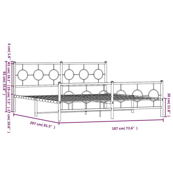 Valkoinen metallinen sängynrunko päädyillä 180x200cm