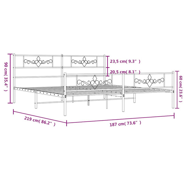 Valkoinen metallinen sängynrunko päädyillä 183x213cm