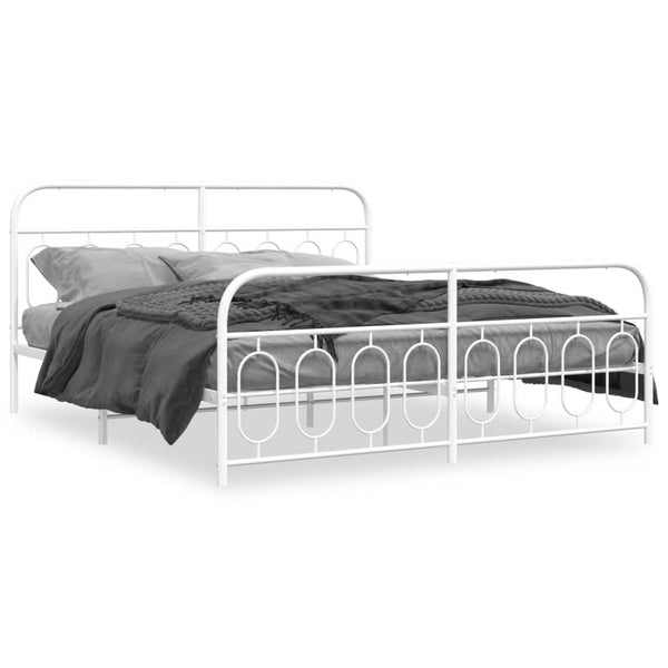Valkoinen metallinen sängynrunko päädyillä 183x213cm